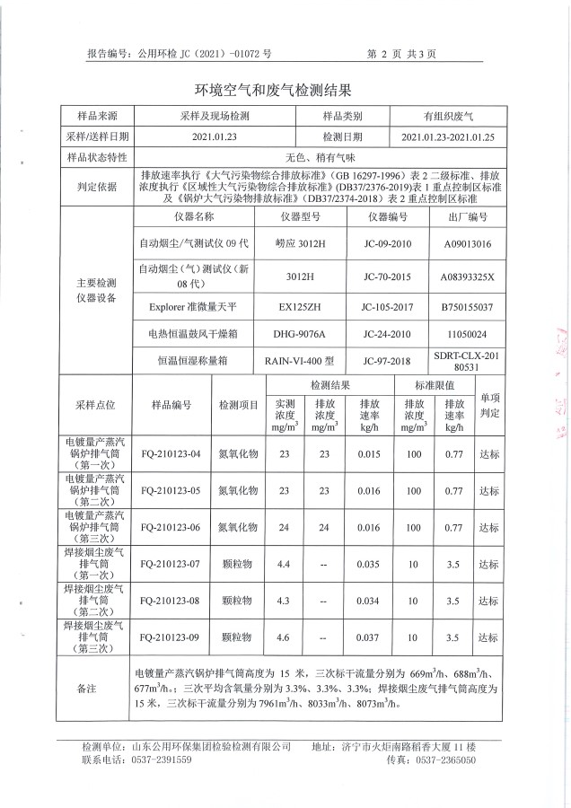 檢測因子:蒸汽鍋爐氮氧化物,焊接煙塵,鉻酸霧
