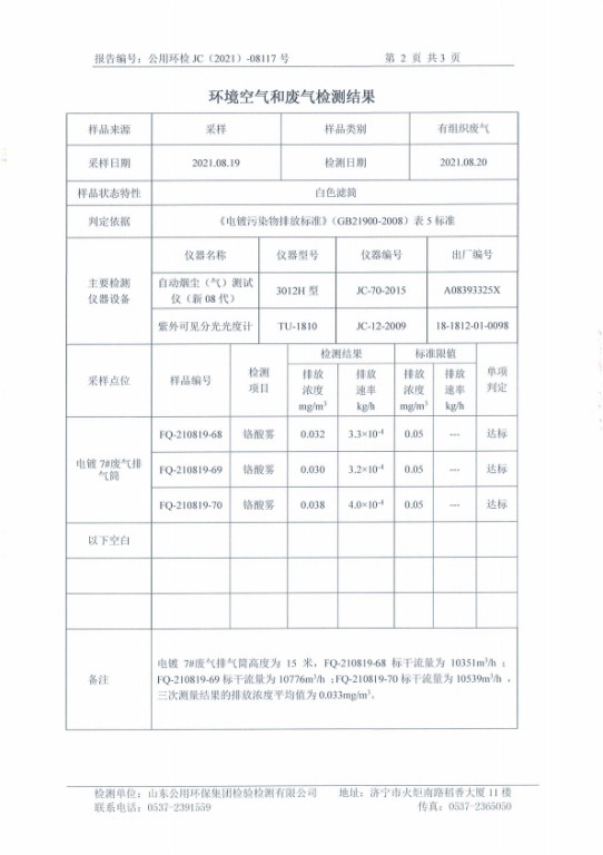 2021年8月鉻酸霧7#排氣筒—鉻酸霧檢測(cè)報(bào)告