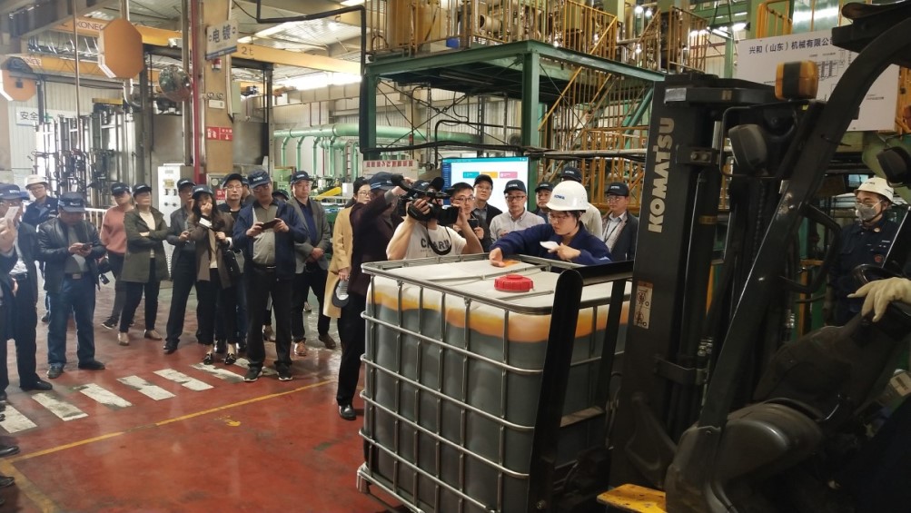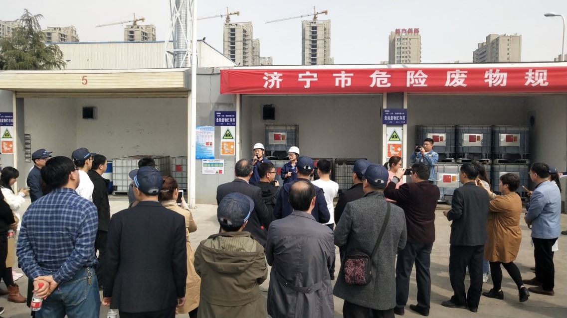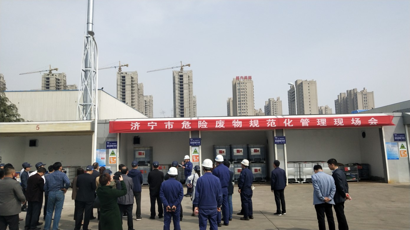 2019年3月27日,濟(jì)寧市生態(tài)環(huán)境局主辦的濟(jì)寧市危險(xiǎn)廢物規(guī)范化管理現(xiàn)場(chǎng)會(huì),在我司舉行。來(lái)自全市14縣市區(qū)生態(tài)環(huán)境局分管局長(zhǎng)、科長(zhǎng)及市生態(tài)環(huán)境局領(lǐng)導(dǎo)共計(jì)50余人,參加了本次現(xiàn)場(chǎng)會(huì),F(xiàn)場(chǎng)會(huì)主要針對(duì)危險(xiǎn)廢物規(guī)范化管理、危險(xiǎn)廢物大數(shù)據(jù)信息平臺(tái)應(yīng)用等方面進(jìn)行交流與學(xué)習(xí),F(xiàn)場(chǎng)會(huì)中,我司伊藤總經(jīng)理致歡迎詞,并對(duì)我司環(huán)保工作進(jìn)行介紹。會(huì)后我司制造部張部長(zhǎng)接收濟(jì)寧電視臺(tái)記者采訪。我司環(huán)保得到與會(huì)生態(tài)環(huán)境局領(lǐng)導(dǎo)的好評(píng)。