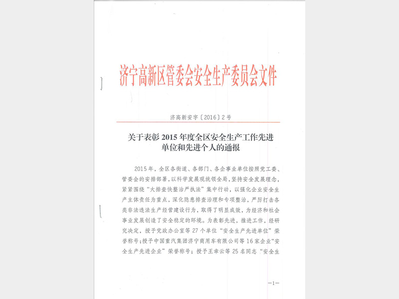 2015年度安全生產(chǎn)先進(jìn)企業(yè)